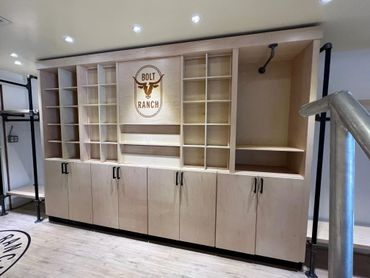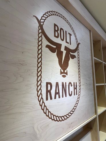 My favorite part of this project was managing the laser etched printer, which we used to wood-burn the Bolt Ranch logo. This process was new to our team and we advanced these capabilities later with the Blue Moon Brewing bar project.