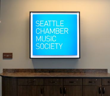 This was a fun project, because the Seattle Chamber Music Society requested some problem solving. I worked closely with the client to strategize how they could have a sign inside, that was bright and maneuverable to see from the street.