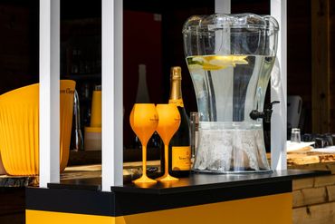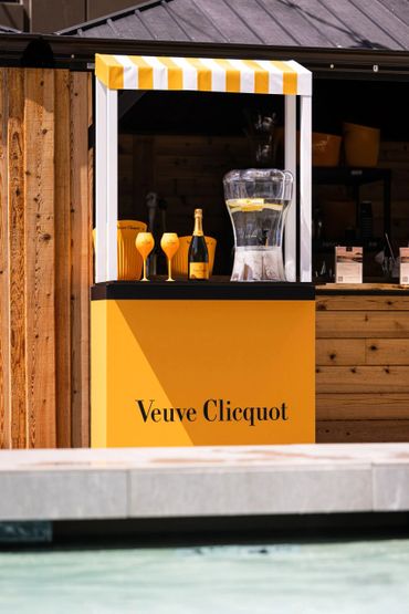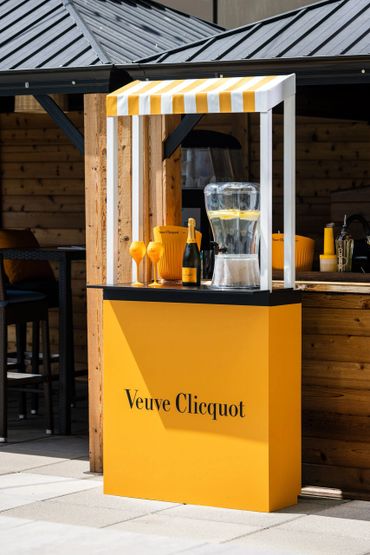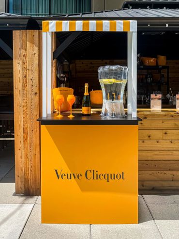 This fun project was brought to me by our contact with Hennessy. Veuve Clicquot put on a promotional partnership at the Four Seasons Seattle. This Champagne window was custom fabricated and installed at the Four Season Seattle pool cabana.